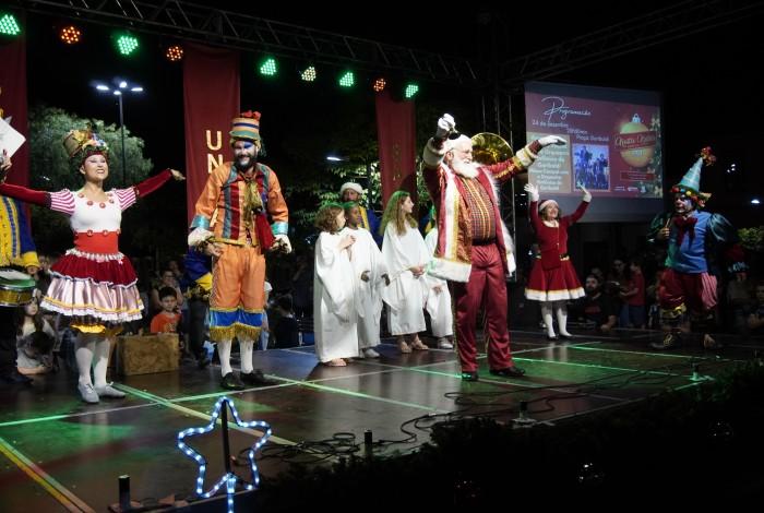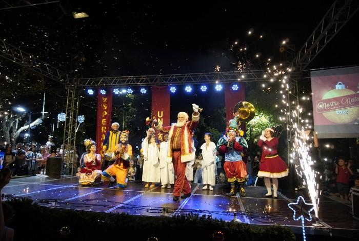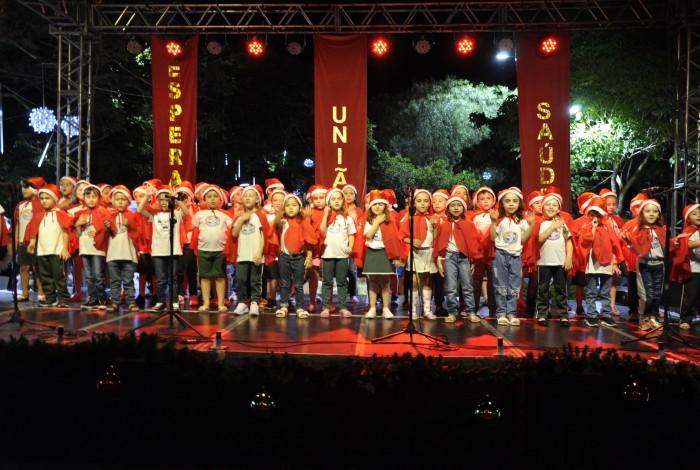 Após a cerimônia oficial de abertura, nove escolas participaram do evento através de lindas apresentações artísticas, em seguida, houve a tão esperada chegada do Papai Noel acompanhado por um cortejo natalino que divertiu a criançada. As crianças e suas famílias também puderam tirar fotos com o Bom Velhinho que permaneceu na Casa do Papai Noel.